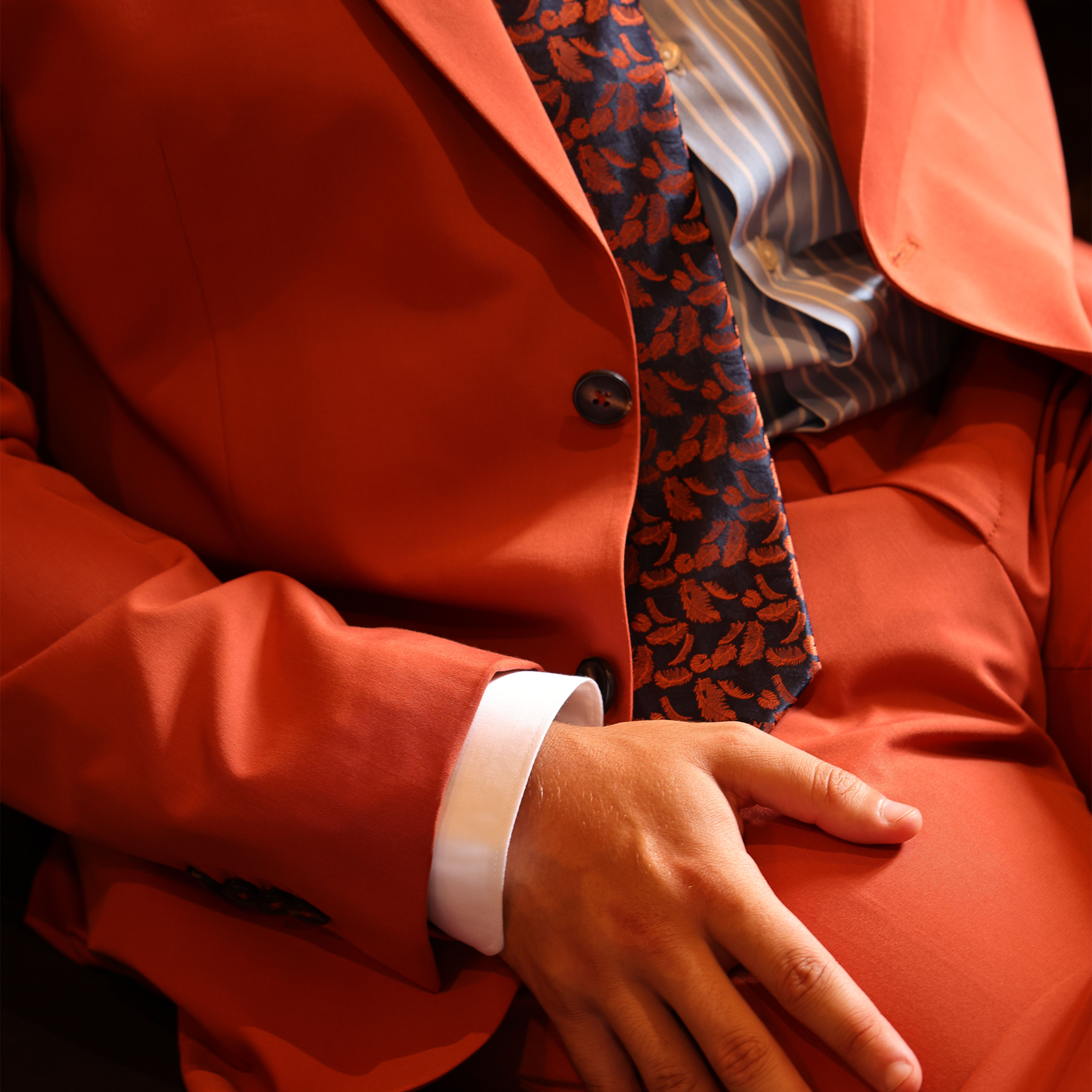 Le Costume Corail – Collection Absolue est une pièce audacieuse, lumineuse et moderne, pensée pour les hommes qui aiment affirmer leur style avec élégance. Conçu dans un tissu premium composé de 70% laine, 24% viscose et 6% élasthanne, il offre un tombé impeccable, une texture douce et une souplesse idéale pour les journées actives au Maroc, particulièrement à Marrakech.